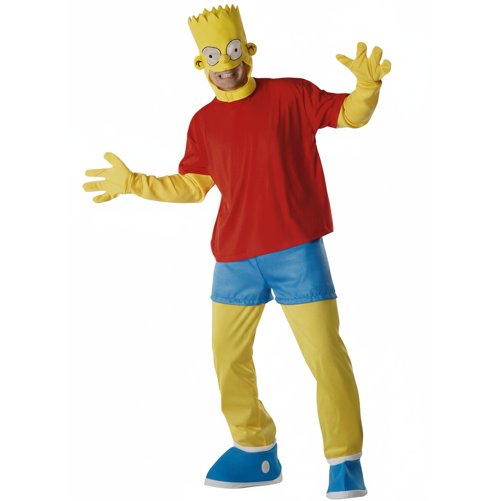 • Ce déguisement de Bart Simpson se compose d’un pantalon, un haut, un masque et chaussures.