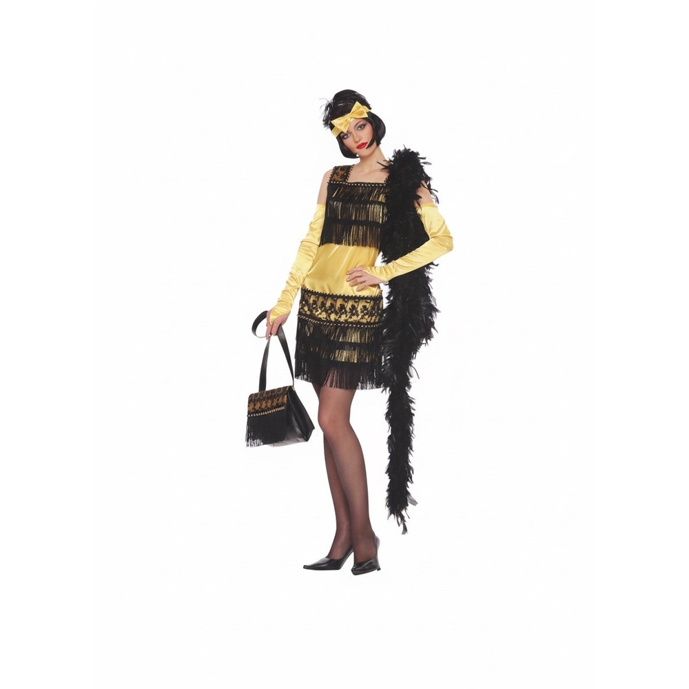 • Ce déguisement de Charleston Or Femme se compose d’une robe, deux manchettes, un serre-tête et un sac.