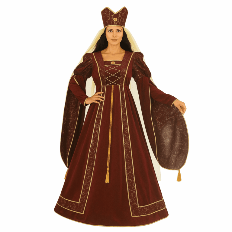 • Ce déguisement de Châtelain se compose d’un pantalon, une veste et un coiffe