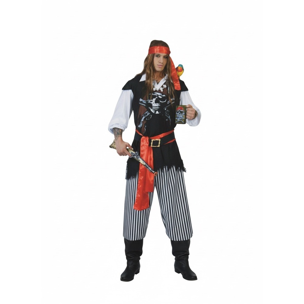 • Ce déguisement de Flibustier se compose d’un pantalon, un haut, deux ceintures et un bandeau.