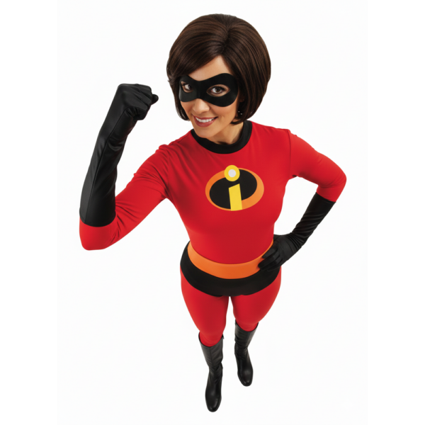 • Ce déguisement de Mme Indestructible se compose d’une combinaison, une ceinture, un masque et gants.
