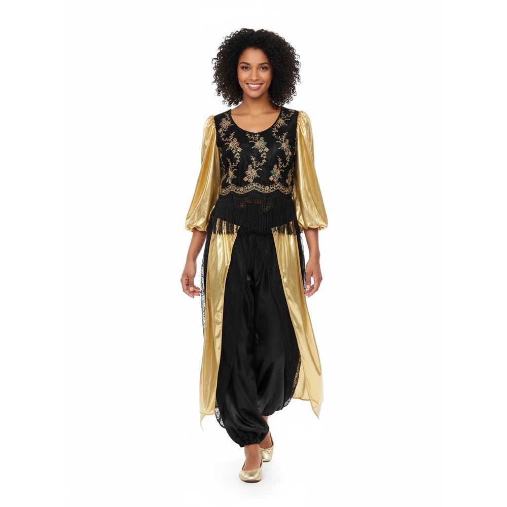 • Ce déguisement d’Orientale se compose d’un pantalon, un haut et une coiffe.