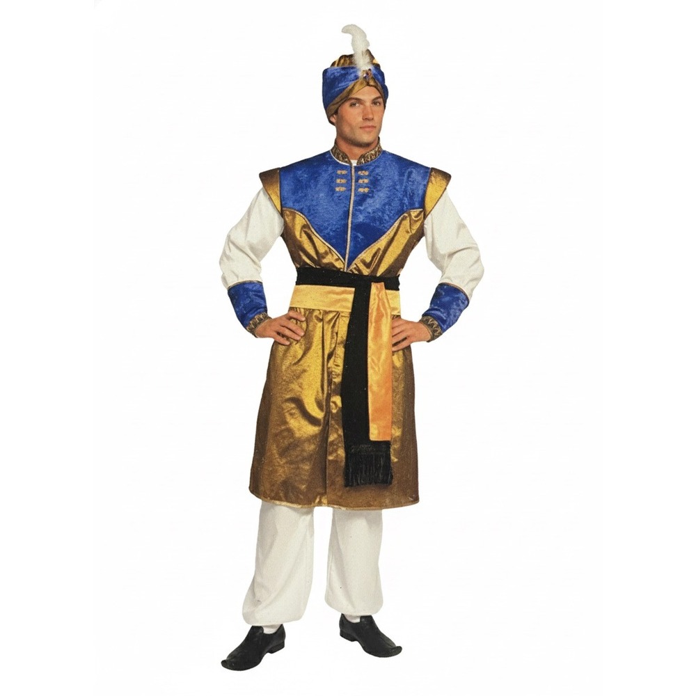 • Ce déguisement de Sultan se compose d’une veste, une ceinture et une coiffe.